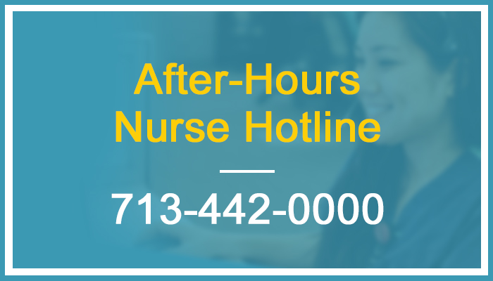 Log into the MyKelsey App or MyKelseyOnline to schedule an in-person appointment or Video Visit. Or call 713-442-0427 to reach our After-Hours Nurse Hotline after 5 p.m., weekends, and holidays.