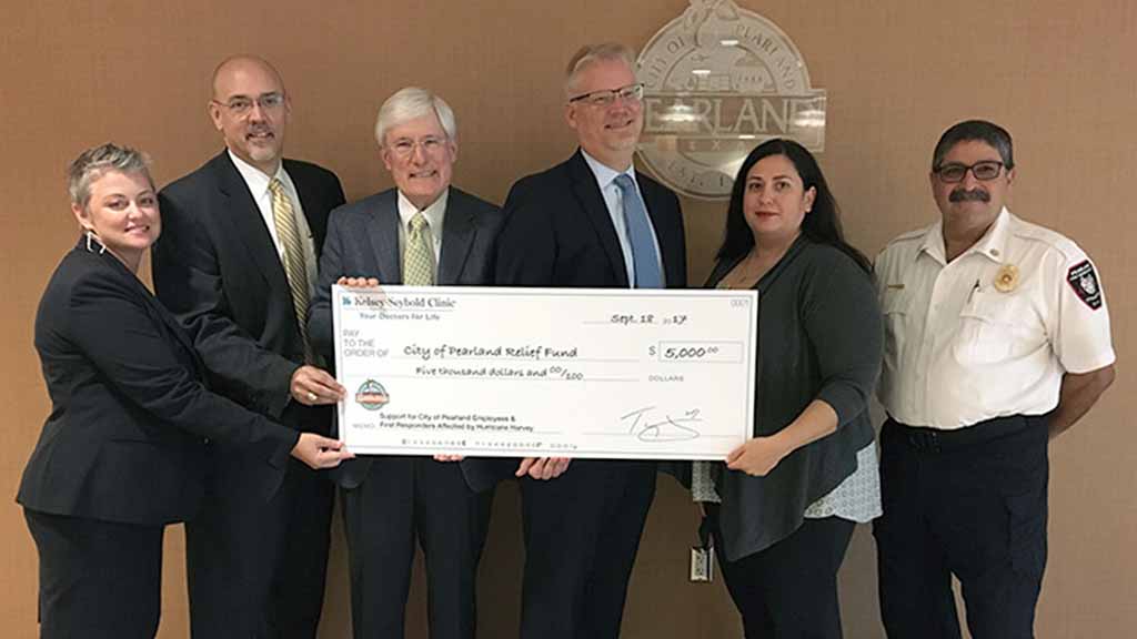 “As the largest private employer in Pearland, Kelsey-Seybold is proud to partner with the City of Pearland in an effort to assist city employees who were affected by the recent floods,” said John Lyle, Vice President of Operations, Kelsey-Seybold Clinic. “We hope that our donation helps employees and their family get back on their feet and on the road to recovery sooner.”