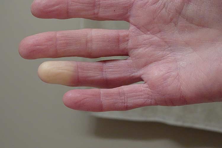 - Fingers or toes that are painful, numb, or turn blue in response to small blood vessels constricting or shrinking
