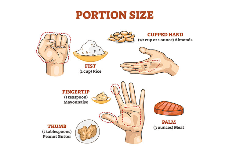 To make it easier to visualize portion sizes, you can use charts such as this one: